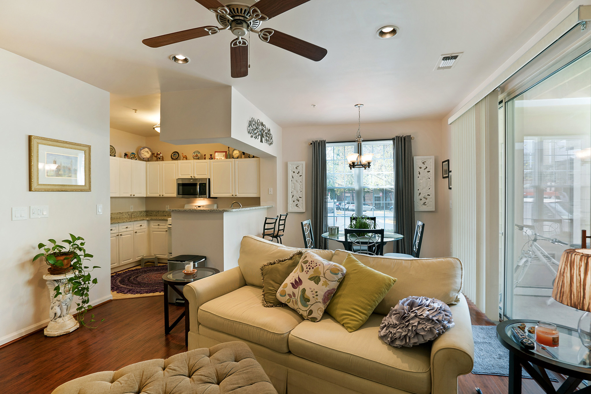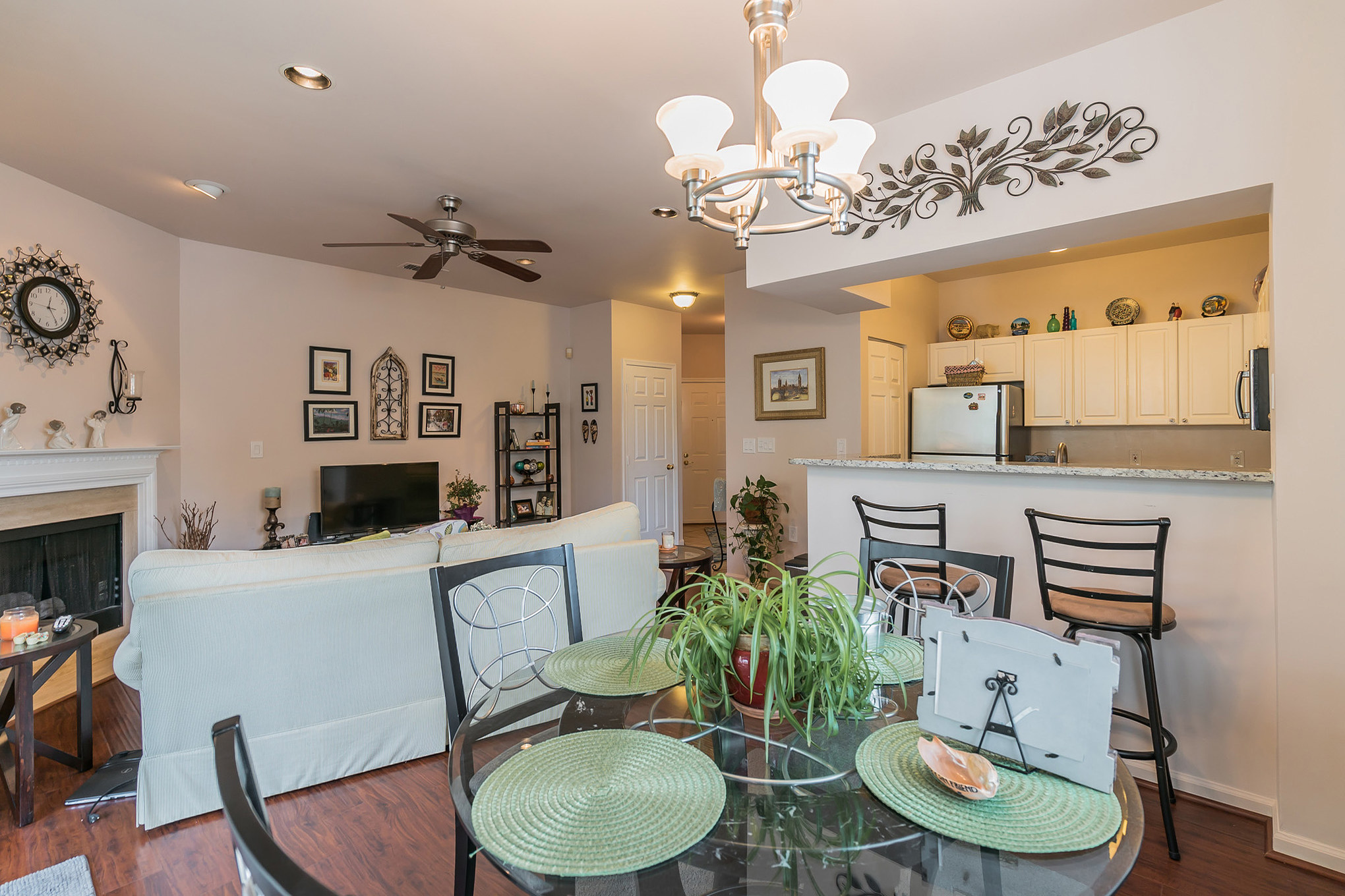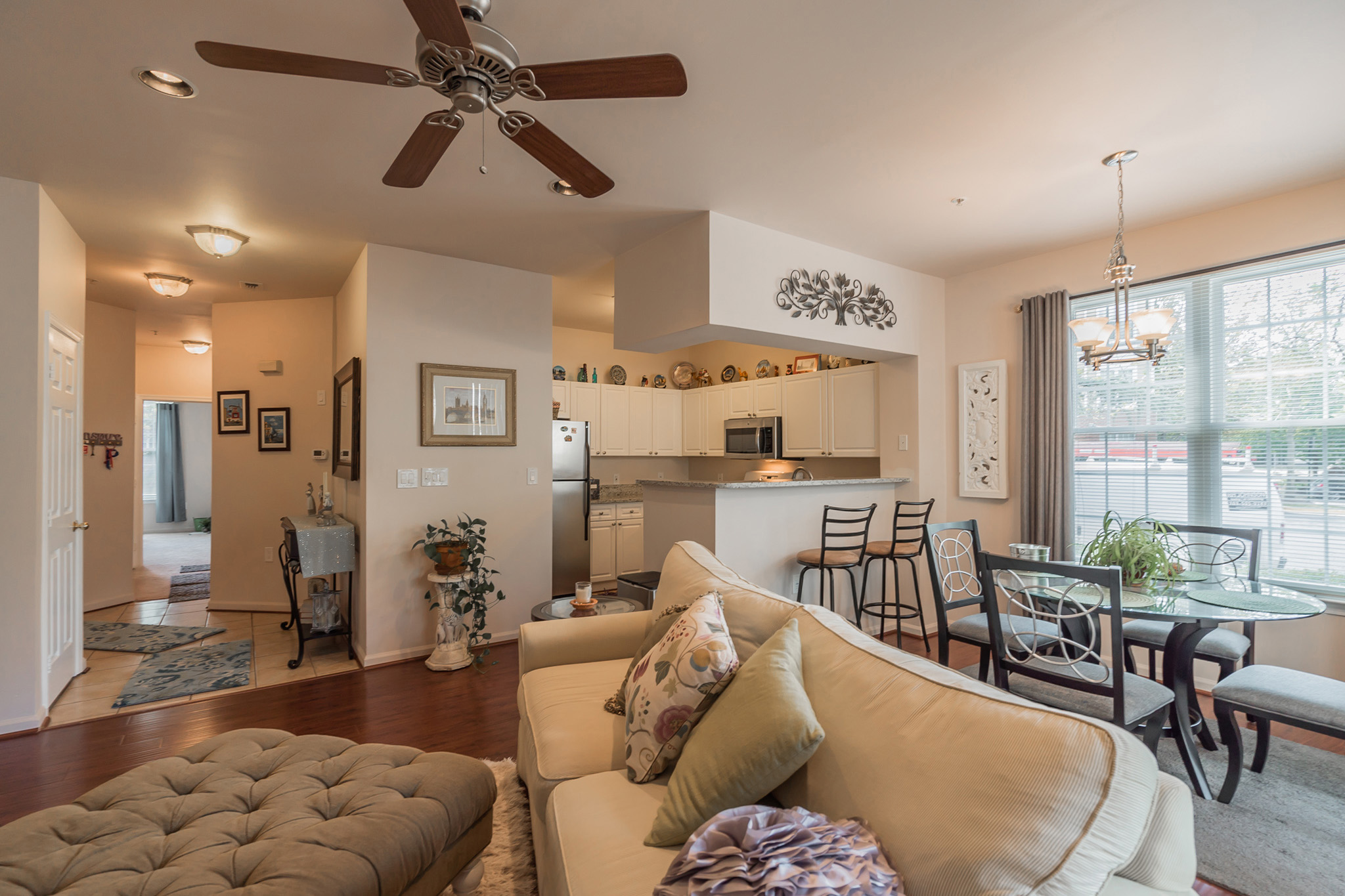 2102 Highcourt Lane #101, Herndon, VA 20170 has just been listed for sale today! It’s a great two bedroom two bathroom condominium in the Worldgate condominium neighborhood. This home has brand NEW granite counters in the kitchen, with an undermount stainless steel sink. There is also a built in microwave. And the kitchen has ceramic tile floors. Plus the nice open floor plan has a breakfast bar from the kitchen opening to the dining and living areas.
