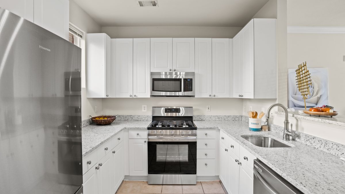 Smile in your new home with lots of natural light. No worries for a long time with brand new stainless steel appliances. Spacious feeling with high ceilings and beautiful updated kitchen countertop. This is cool, not your average condo. Walk in your private entrance to relax or entertain in the kitchen or living area. Make your way upstairs to primary bedroom and bathroom or secondary bedroom and bathroom. Both have walk-in closets, and both bathrooms are nicely renovated with granite counters. New carpet and new light fixtures throughout are just two of many evidences of pride of ownership. Community also has a lot to offer, including semi-private garden/common area just outside the other unit door.