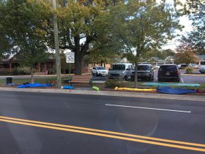 The annual Halloween parade is such a hit in the Town of Vienna that people put out their towels, sleeping bags, chairs, and other belongings to mark their space (aka real estate) well before the actual event. Some put these markers out hours before. Others seem to mark their spot a whole day in advance.