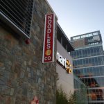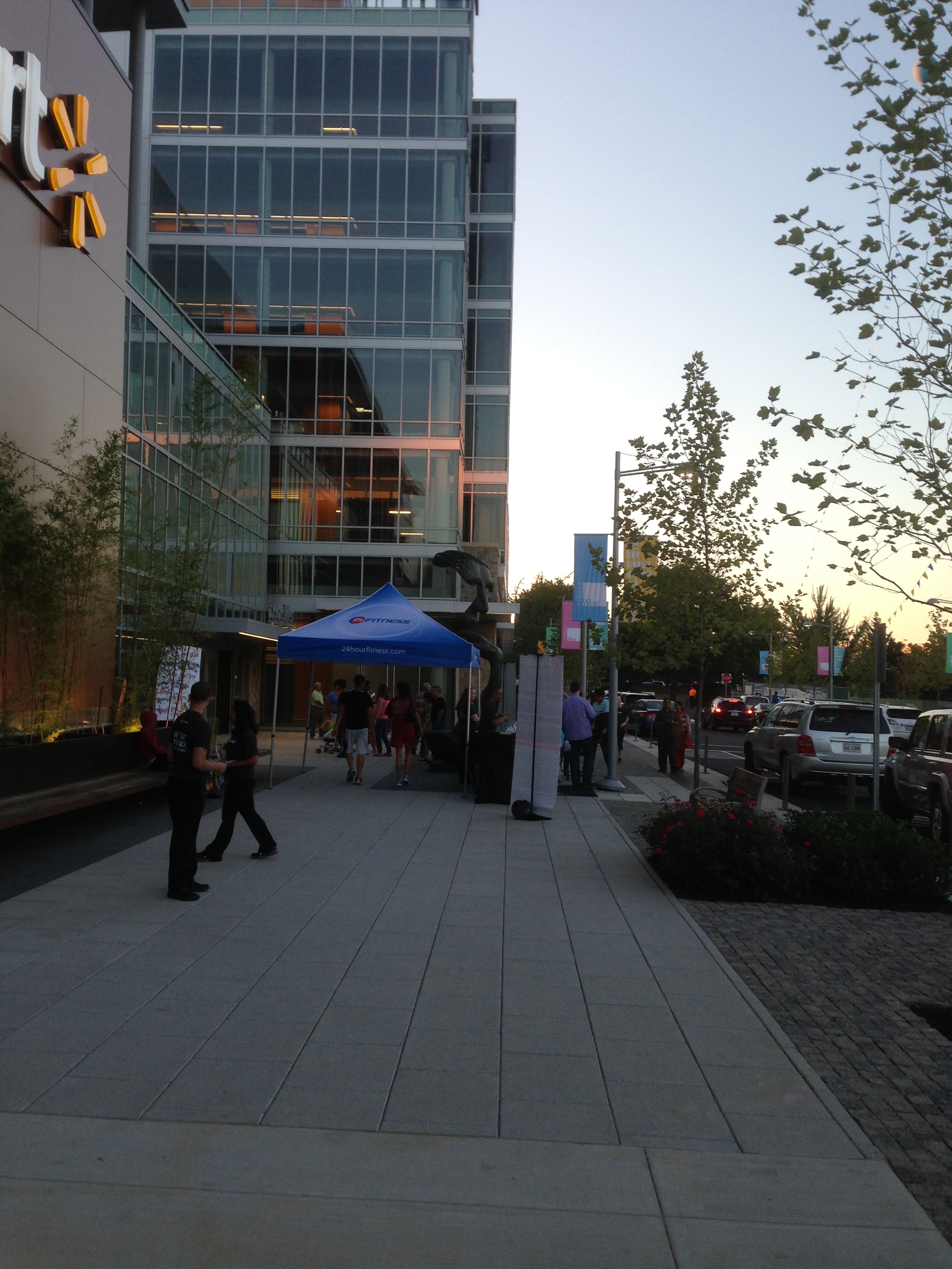 Also in the same building will be a Noodles and Company Restaurant, a 24 Hour Fitness Gym, and other stores and restaurants.  All of which, like the Walmart, will be brand new to Tysons Corner – because that development and building are brand new.  The 24 Hour Fitness gym will have an indoor pool, free weights, dumbells, circuit training, cardio machines, group exercise classes, a basketball court, and more.  It is said to open before the end of this month.  Today in front of the building, capitalizing off of the energy of the Walmart’s grand opening in Tysons Corner, the 24 Hour fitness membership staff was handing out promotional materials and 3 day guest passes.  The Noodles and Company seems like it will take a little more time to be ready for it’s first paying customers, but it is a welcome addition to the Tysons West development and the Tysons Corner area.
